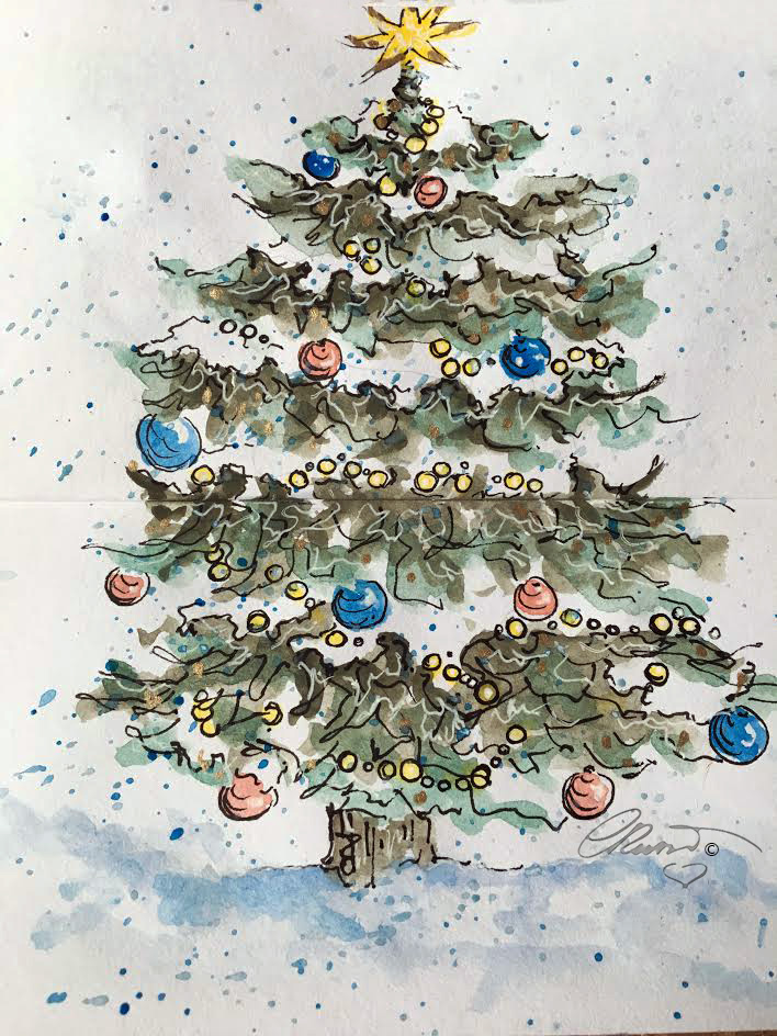 CHRISTMAS TREE Day 15 – Original Watercolor ©Carolina Russo