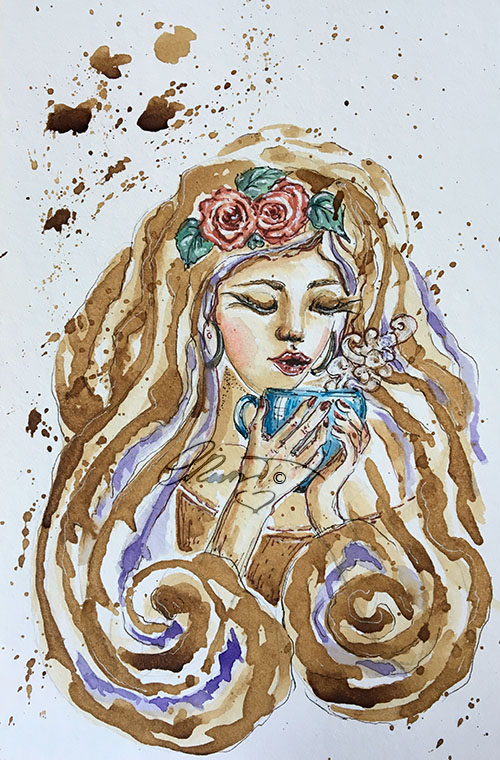 Coffee Painting Week 2 – Favorite Coffe /Tea Mug – Original Coffee and Watercolor ©Carolina Russo