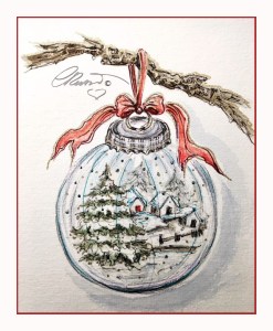 Day 8 – Bright Snow – Bauble – Watercolor ©Carolina Russo