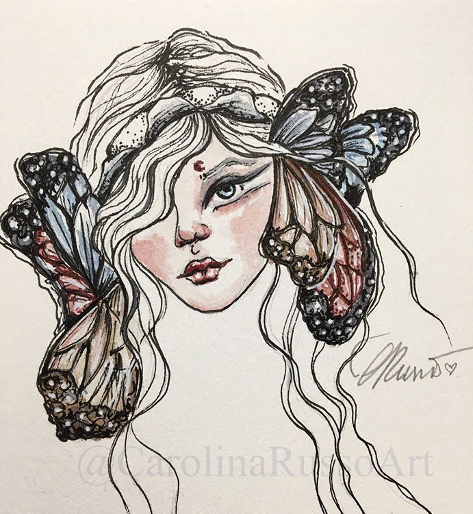 Butterfly Child – Watercolor Ink Painting ©CarolinaRusso