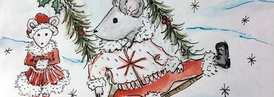 My watercolor painting is outlined with ink pens. Fountain pen Pilot Prera fine nib. Ink pens used MICRON Black ink #03 and 05, Sakura Gold Pen Touch Calligrapher. A Alvin Draft/Matic #03 Limited Edition Pink Mab Graves Pencil. Watercolor, I used French Artists Watercolors Sennelier l’Aguarelle, only one color used: Gray Payne, Pentel Aqua Brush – I painted on Bee Paper for watercolor 140lb, 100% cotton, cold pressed.