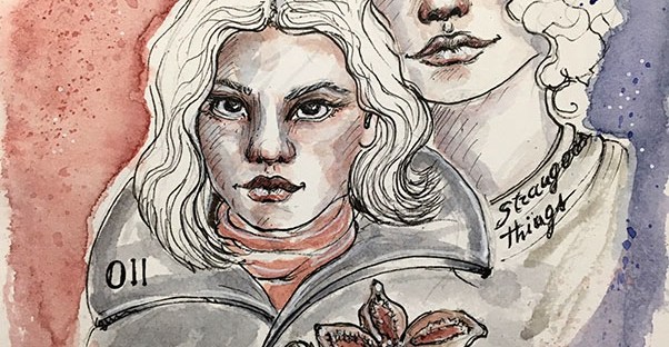 Today drawing is inspired by the prompts “Stranger Things” a very popular American TV-14 series for young adult on Netflix. If you are familiar with the 3 Seasons of this fiction, science, horror series, then you sure recognized my two very loved main characters. Eleven the girl with the special telepathic and psychokinetic powers and ability and Mike the boy that found her when she escaped from an experimental scientific facility. I am not going to say more… as I don’t want to spoil the story if you intend to watch it! I have to say, that I enjoyed to watch all the 3 seasons with my daughter very much it is a very interesting , fun and dramatic series and very captivating! Now waiting for the 4th Season hopefully in 2020.