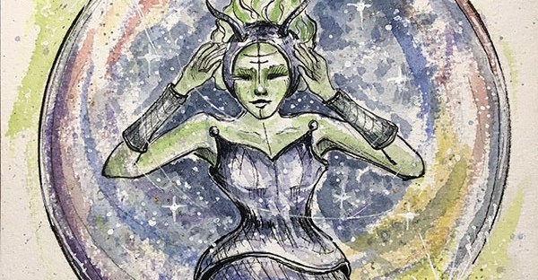 Today drawing is about Aliens creatures! She is my little Alien a traveler of the Universe! Her ride is in a beautiful bubble she brings messages of love and peace💗