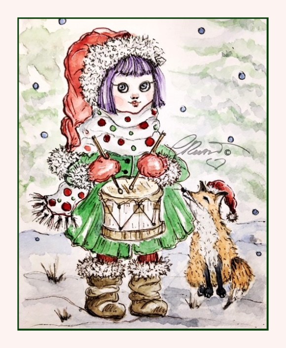 As I mentioned in my previous post I am participating at two challenges, following the prompts and combining them together. These challenges are hosted on Instagram one is “Wintmas” 15 days of painting lovely Christmas prompts #karlaswintmaschallenge hosted by artist Karla Pereira from Spain. The second challenge is hosted by a Collective of Artists “Bad Apple Collective” the challenge is “Bad Apples 12 Days”#badapples12days and of course I share them also joining Charlie O’Shields of doodlewash for the #worldwatercolorgroup.
