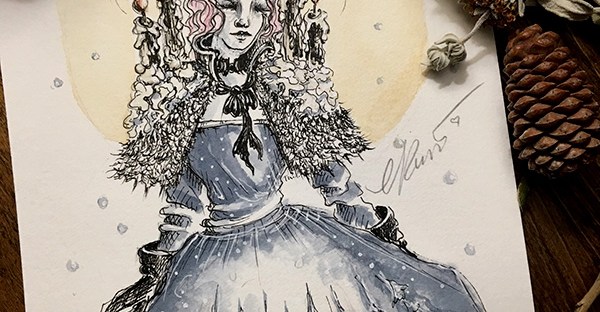 Today drawing is ethereal and surrealistic it took long time to finish it! There is lots of  detail work in these drawings especially my latest three! Today I have used black and white inks! It was challenging to combine prompts in a interesting and original way and I am very happy with what I did!  Today I used black and white inks and watercolor for my “Candelabra lady” almost a kind of Snow Queen in the freezing snow wearing candles on her shoulders a icicle crown and a forest dress 🖤❄️❄️❄️🖤 I added one of my older quotes that in my opinion fits pretty well with the drawing. I hope you like it!