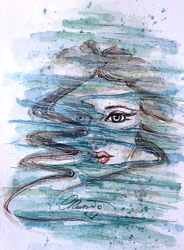 ❤ Details about my paintings: My Ink drawing is outlined with ink pens. Pentel Pocket Brush black ink. Ink pens used COPIC Multiliner Black ink #03 and 05, Micron dark red ink #1. A Alvin Draft/Matic #03 Limited Edition Pink Mab Graves Pencil. A dash of watercolor, I used French Artists Watercolors Sennelier l’Aguarelle, Pentel Aqua Brush – I painted on Bee Paper for watercolor 140lb, 100% cotton, cold pressed, size 6×9 inches .