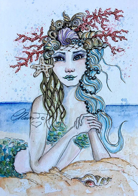 The month of May is almost over and so the #mermay Art Challenge. I love painting mermaids and sadly this year I had no time, I was only able to create one new mermaid to include in my existing Mermaids Collection. I painted only one but I am very happy with my painting and who said that time is over for creating Mermaids? Yes the challenge is over but I can create new Mermaids whenever I want! 😉