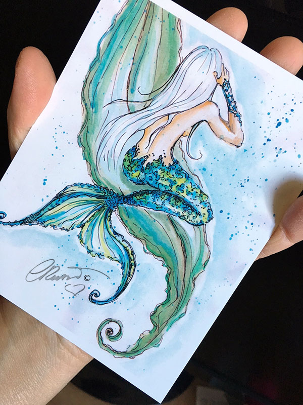 The Mini Prints are signed and ready to be framed, is the perfect addition to your art collection, or a lovely little gift to all the “Mermaids Lovers”.