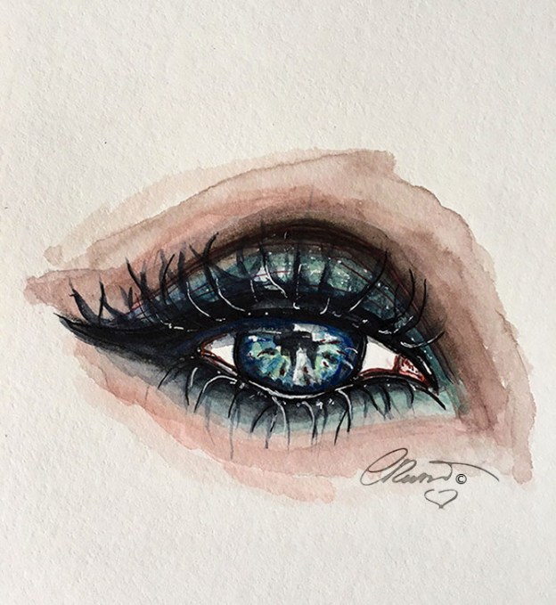 I am running one day behind! Today painting, it is another off prompt my title is “Introspection” I painted a realistic eye to symbolize the given title Introspection which means “to look inside,” and describes the act of thinking about your own actions or inner thoughts. When you examine what you do, say, think or feel and how it affects your life and the lives of others, that’s introspection.