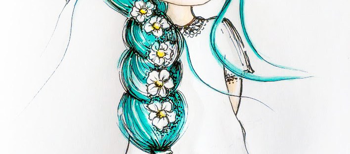 Stage 3 decisions and final touches: At this point I was at stage three I came back to my painting after being a part with it for several days! And I have decided to go on with the ink pen and doing some fine line work, I used Copic Multiliner pens with #0.1 and #0.03 tips this will leave the painting just more defined but still have a feeling of lightness. I also used touch of gold ink on the head-piece the thin branches of her crown are in gold ink and on the dress neckline there is a gold trim. I gave a touch of white ink just to give more contrast in her hair.