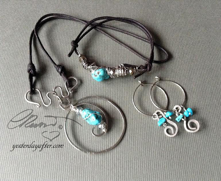 There is a sliding Turquoise Centerpiece that allow to wear the necklace in different ways just moving it.