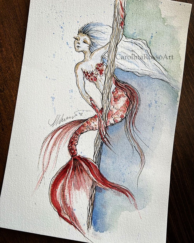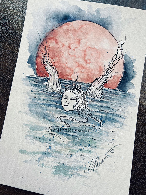 Welcome May and Happy Mother’s Day! Hope you all are having a wonderful day. During this month there is a lovely painting and drawing Art challenge it is MerMay the theme is Mermaids! This is a 31 days daily painting or drawing challenge, a great way to be creative. Art Challenges are good to test your skills, experiment new techniques and also to get out of block if you are in a moment of lack of inspiration. Join is fun and allow you to get in a serious every day painting routine or just to create a mermaid once a week or whenever you are able to. Every year I am looking forward to a few Art Challenges and one of them is this one! An inspiring challenge to paint a few new mermaids to add to my “Mermaids Collection Series”. This year I am not planning to do the daily 31 days challenge but I will create some new mermaids weekly throughout this month. Last year I started a Mermaid Spiritual Series on the theme of “Awakening” I will continue on this theme this year too. I do create my own mermaids freely without follow any prompt list but if you would like to join and need a prompt list search for mermay2022 prompt list and you will find many. #MerMay is very popular between the artists community on Instagram you can also follow me there @carolinarussoart